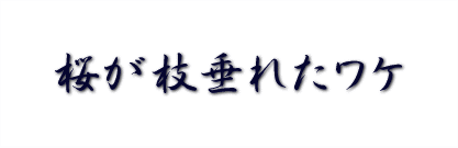しだれ桜が突然変異で枝垂れ、あらかじめ低頭しているかに見えるのは、もしや我々の代わりに謝ってくれているのだろうか。「いろいろ不調法があるかもしれませんが、あいつらも私のせいでハレ(非日常)に入っちゃってますから、ご勘弁を」と。